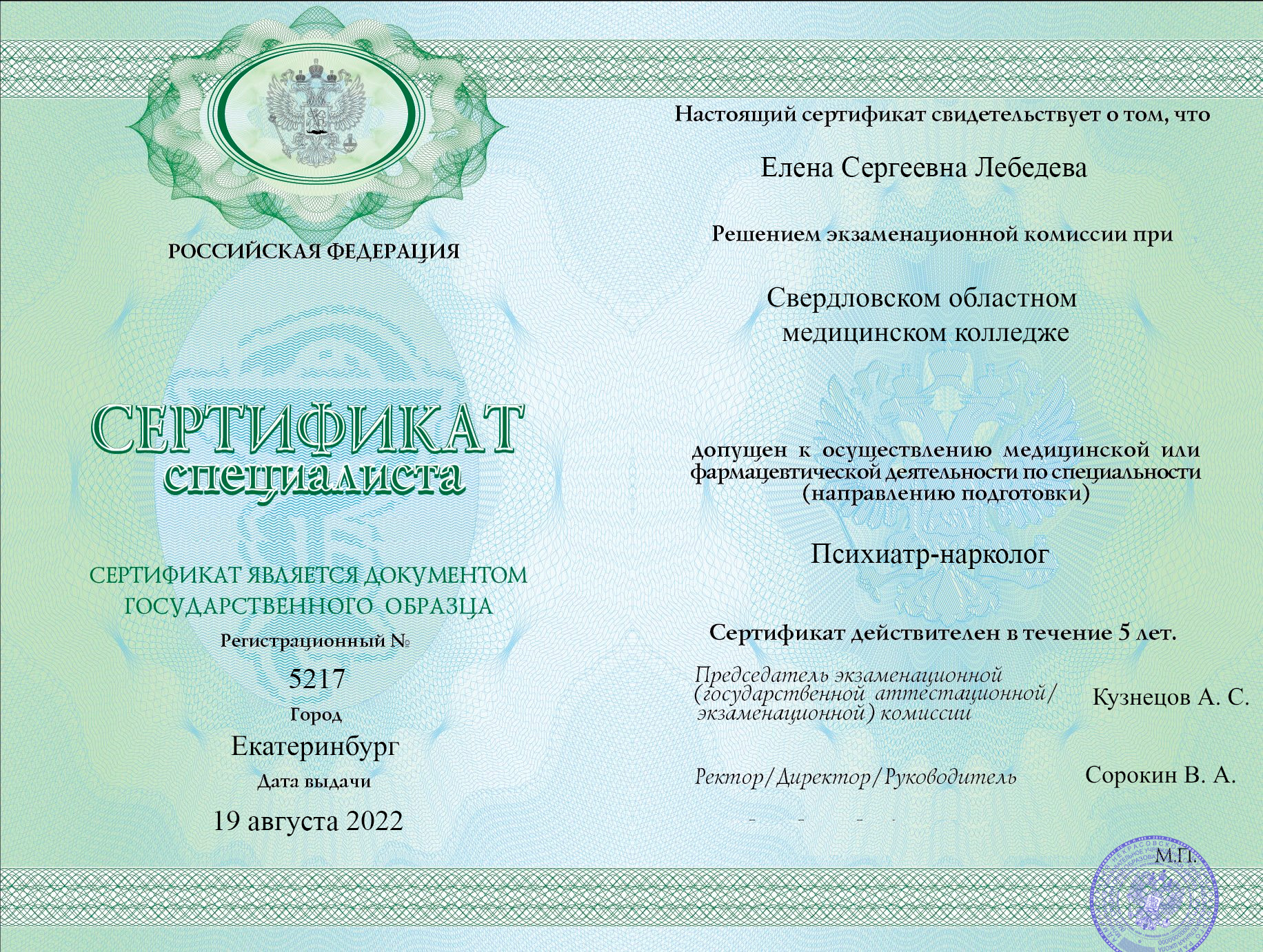 Елена Сергеевна Лебедева врач нарколог клиники доктора Стукаловой в Пестово